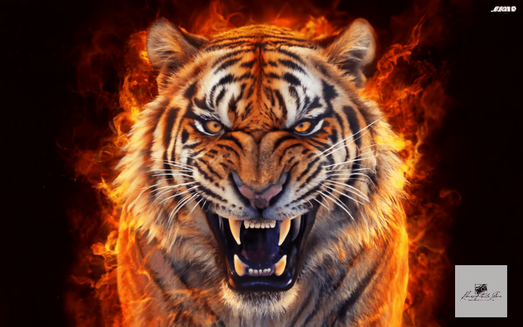 Fierce Tiger with Flames | Wildlife Fantasy Photo Download