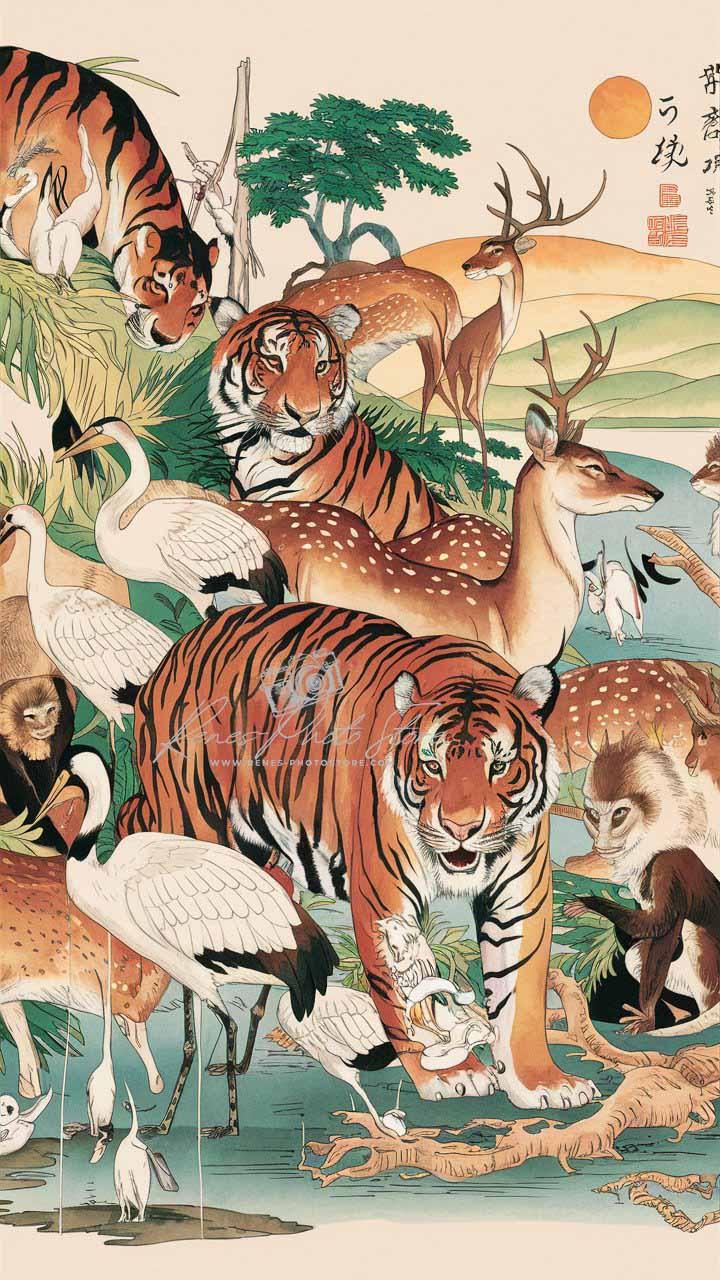 Tigers and Wildlife in Ukiyo-e Landscape | Japanese Art Photo Download